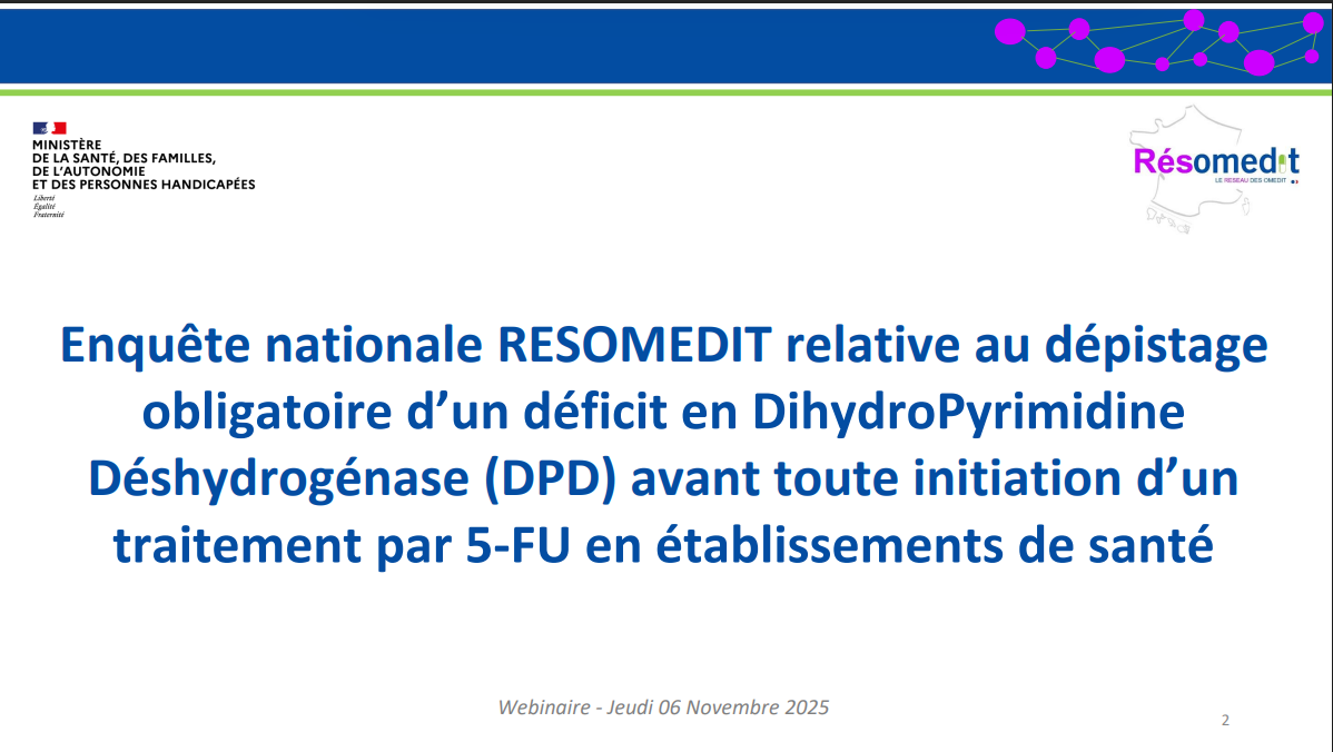 C’est pourquoi, depuis 2019, un dosage sanguin appelé uracilémie est obligatoire avant toute première prescription de 5-FU. Ce test permet de détecter un éventuel déficit en DPD qui aura pour conséquence d’adapter la posologie ou d’éviter l’administration de 5FU.
